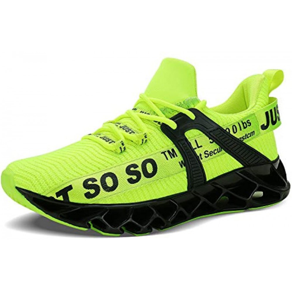 Mens Runing Shoes Walking Non Slip Blade Type Sneakers Black Green