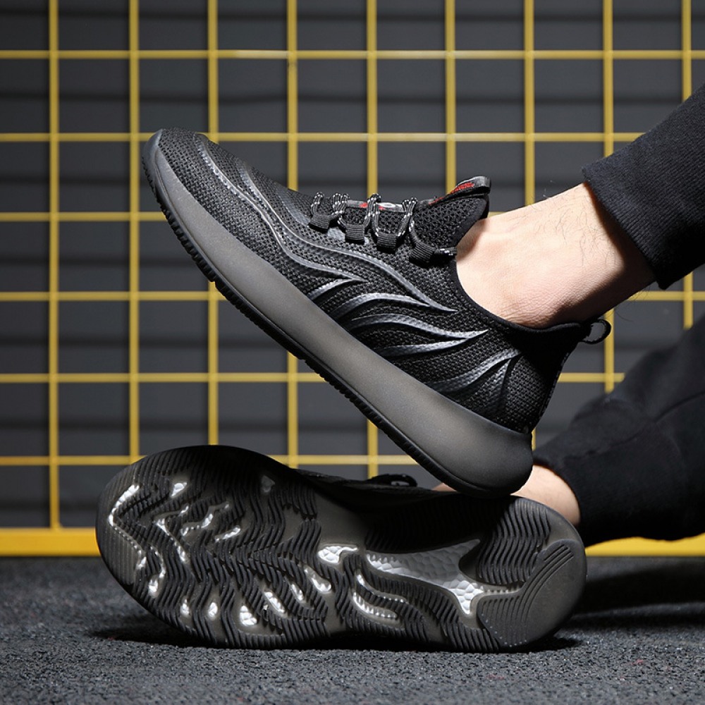 Men's Non Slip Gym Sneakers Lightweight Breathable Athletic Running Walking Tennis Shoes Black